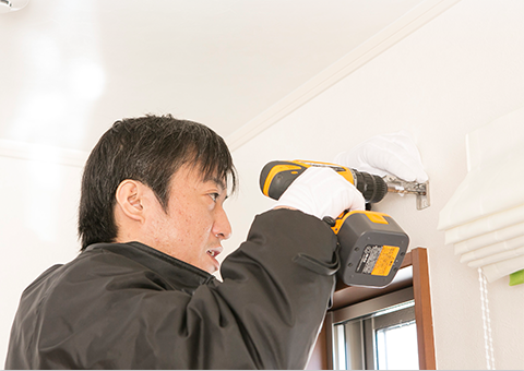オーダーカーテンの施工に関しては確かなテクニックとノウハウを持つ熟練のスタッフが活躍します。なかでも部屋と窓辺の調和を考慮したカーテンレールの設置は重要なポイントになります。カーテンを取り付けた際に光と風と布が調和し、またカーテンとしての機能性も確保することになるからです。